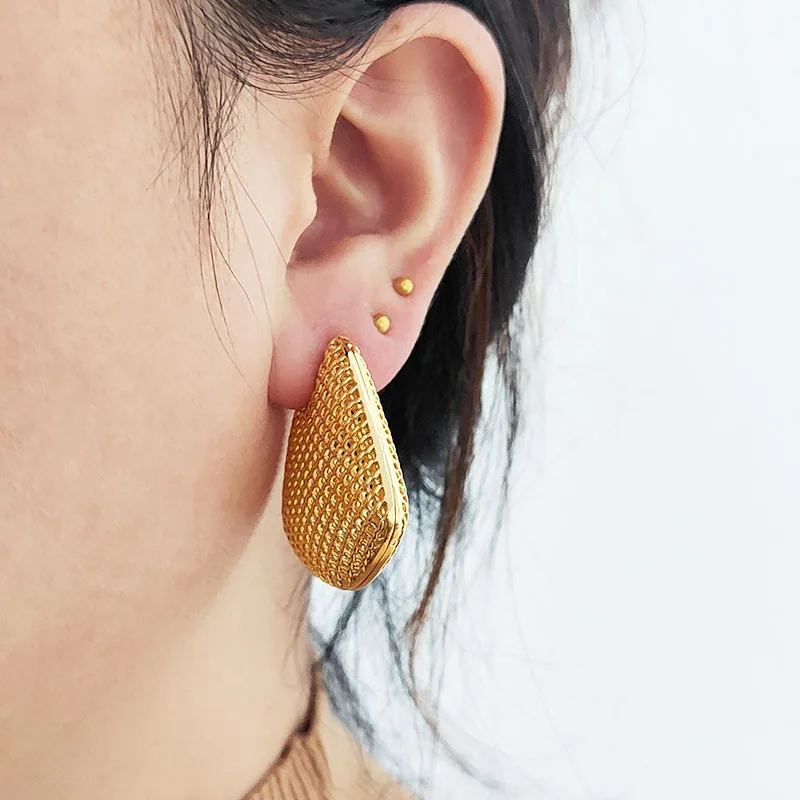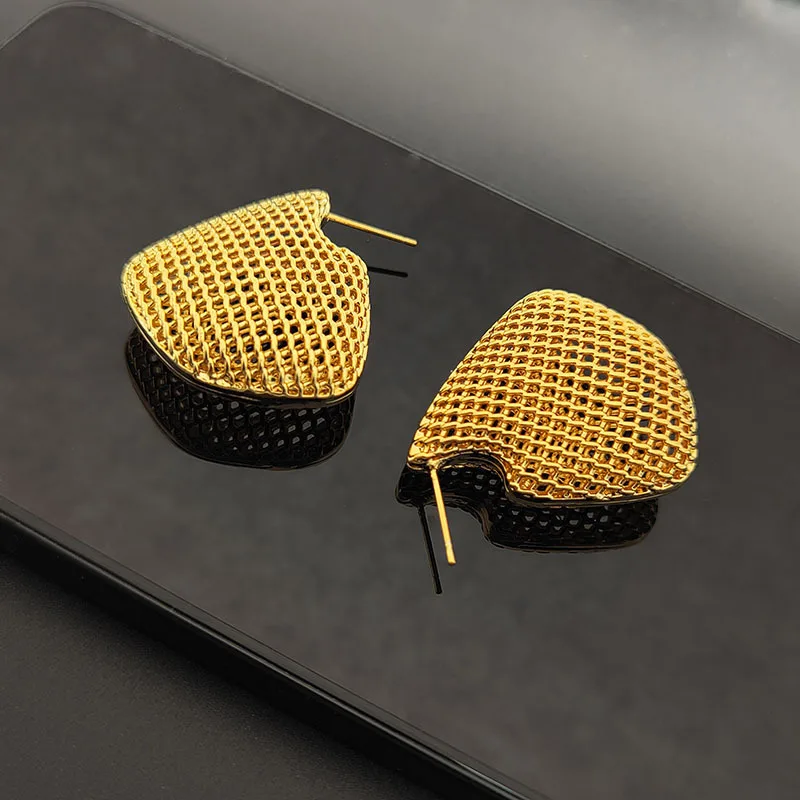Orecchini pendenti in metallo con motivo geometrico dallo stile vintage. Perfetti per completare outfito eleganti o come regalo raffinato per ogni occasione speciale.